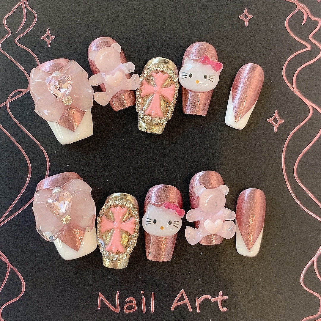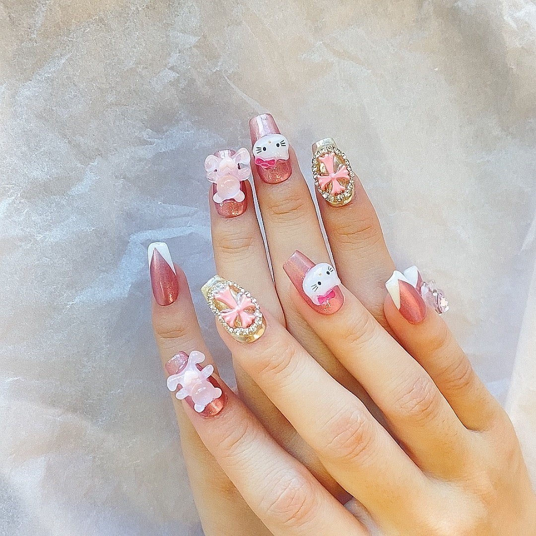 Kitty Charm – Kawaii Press-On Nails with 3D Embellishments